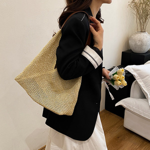 2025新型韓国版ins編みバッグ女性大容量海辺リゾート風シングルショルダーバッグ復古小衆特包