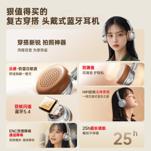 2025新型レトロファッション金属小型ヘッドセットbluetoothヘッドセット無線ケーブル5.4ヘッドセットが長く続いています。
