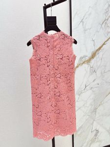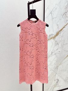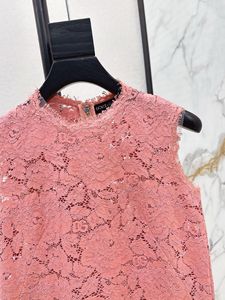 深圳南油25春夏高端女装度假风减龄浪漫迷人柔粉色蕾丝无袖连衣裙