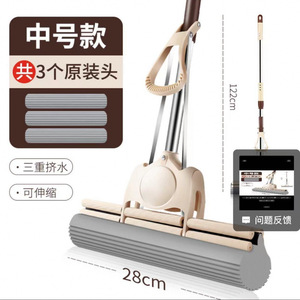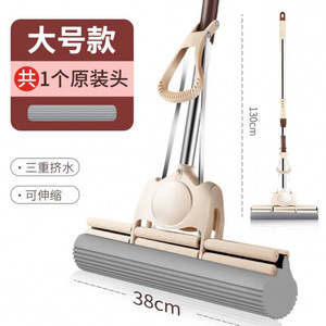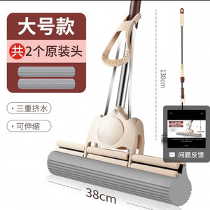 38CM海棉挤水拖把官方不锈钢免手洗滚轮式胶棉拖把吸水拖布不变形