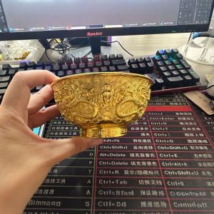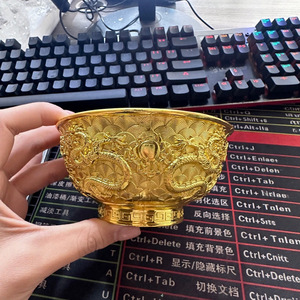 龙腾盛世掐丝珐琅金碗仿古大清乾隆年制双龙碗景泰蓝生肖家居摆件
