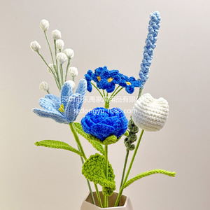 クロスボーダーチューリップ忘れな草ラベンダーローズ造花家の装飾ウール手作りかぎ針編みブーケ