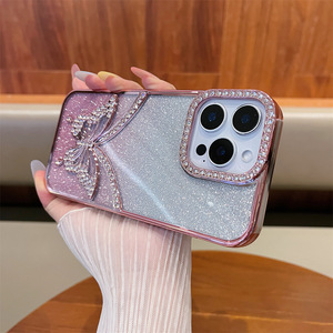 ドリルを入れた平面蝶メッキフラッシュ粉はiphone16 promax携帯電話ケース14リンゴ15/13に適用されている