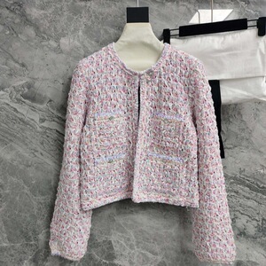 2025 新しいスタイルのアイスクリームカラーカーディガンダイヤモンドボタンセレブスタイルジャケットファッションポケットデザイン