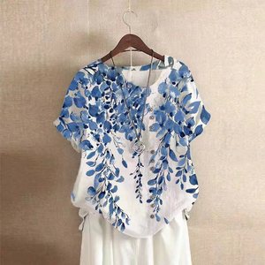 一流ブランドの有名なテールシングルカットレーベルレディース2025春夏プリントレトロコットンとリネン半袖カジュアルTシャツトップ