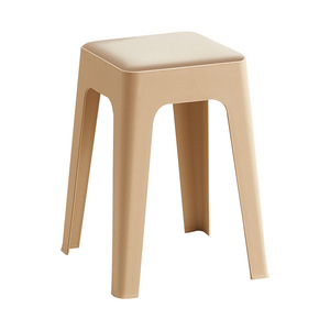 北欧家庭用ダイニングスツール正方形積み重ね可能なレストランベンチ待機クリーム色の大人のプラスチックソフトパッケージスクエアスツール