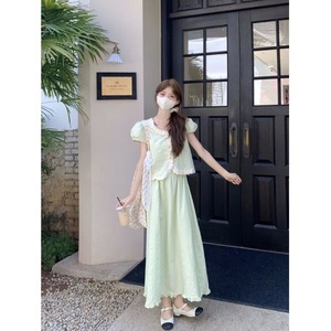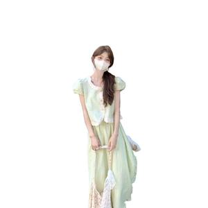 女性のための小さな新鮮なドレススーツ夏 2025 新しい高校生スタイルのトップスとスカートの 2 点セット