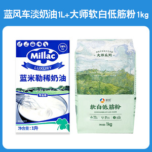 2000ml 蓝风车淡奶油1L+大师软白蛋糕粉1