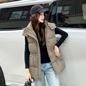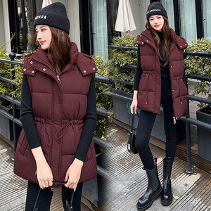 2025 秋冬新綿ベスト女性のミッドレングスウエストスタンドカラー黒チョッキインターネット有名人のベストジャケット