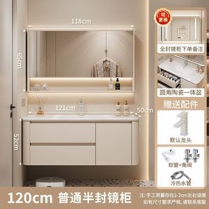 120 インテリジェントなフルおよびハーフ密閉ミラー キャビネット一体型セラミック洗面器