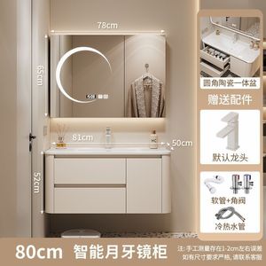 80 インテリジェント半密閉ミラーキャビネット一体型セラミック洗面器