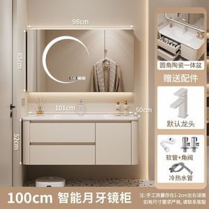 100 クレセント スマート ミラー キャビネット一体型セラミック洗面器