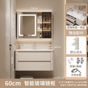 60 インテリジェント ガラス ドア ミラー キャビネット一体型セラミック洗面器