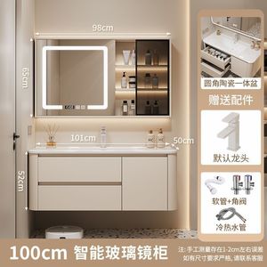 100 スマート ガラス ドア ミラー キャビネット一体型セラミック洗面器