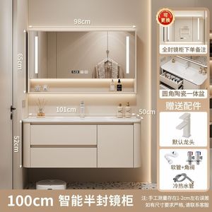 100 インテリジェント半密閉ミラーキャビネット一体型セラミック洗面器