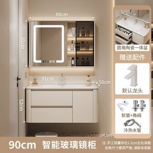90 スマート ガラス ドア ミラー キャビネット一体型セラミック洗面器