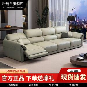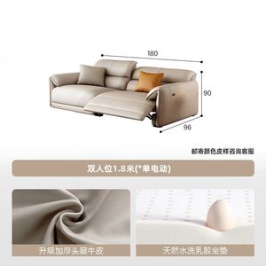 壁に沿った電動機能トップレザーソファシンプルイタリアンモダンな小さなアパートのリビングルームストレートレザーソファ