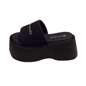 女性が外で履くための厚底7cmサンダル、2025年新作夏用小柄身長アップサンダル、カジュアルプラットフォームスリッパ