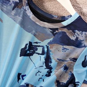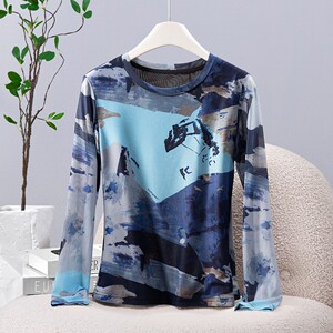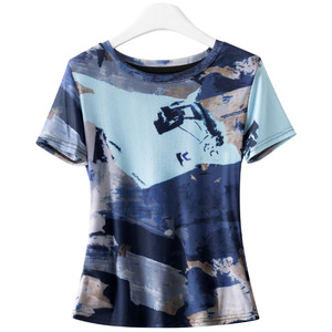高弾性、ユニークなプリントメッシュ T シャツ女性用 2025 新しいルーズでスリムな多用途半袖トップスボトリングシャツ