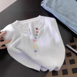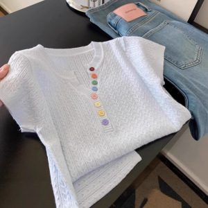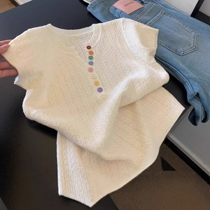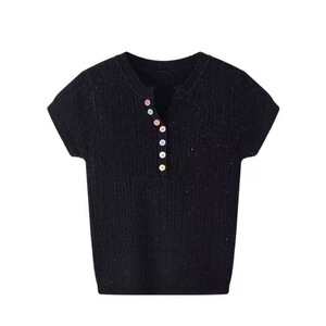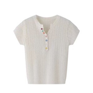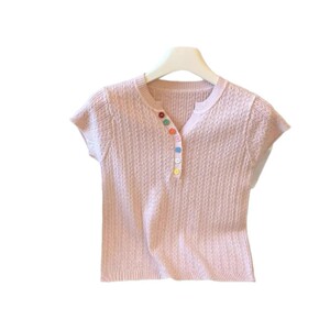 優しい風カラーボタン半袖ニット女性夏tシャツの新しいデザイン感が痩せている上着