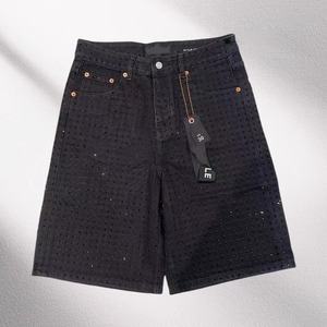 メンズデニムショートパンツ ホットフィックスラインストーン ストレートレッグショーツ
