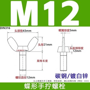 白亜鉛メッキ蝶ネジ蝶手ねじ込み炭素鋼メッキ白亜鉛ネジ元宝ボルト羊角ネジM4-M12