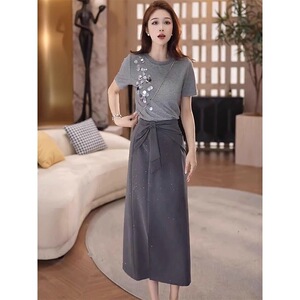 ヨーロッパヘビーデザインスパンコール半袖Tシャツレディース2025夏アメリカンライトラグジュアリーハイエンドグレートップ