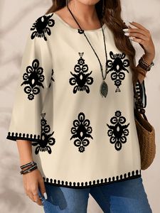2025 Amazon ヨーロッパとアメリカのカジュアルトップスルーズクロスボーダーエレガントなミッドスリーブシャツ特大サイズルーズでスリム