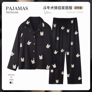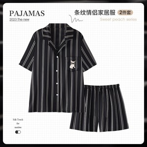 男性と女性のための黒のカップルパジャマ夏のアイスシルク半袖ショーツ模擬シルククールな夏のホーム服春と秋のスタイル