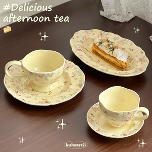 Ins風レトロロマンチック花高颜値陶磁器食器セット皿マグカップ結婚新居陶磁器ボウル