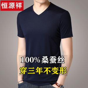 Hengyuanxiang 100% マルベリーシルク半袖 Tシャツメンズ 2025 夏新シルクルーズ薄氷シルクお父さん T