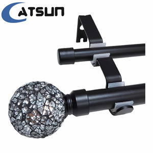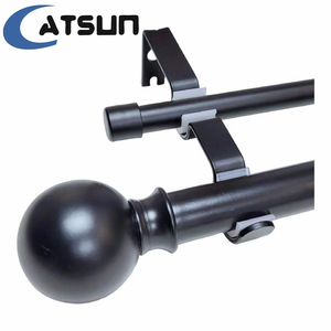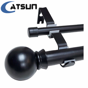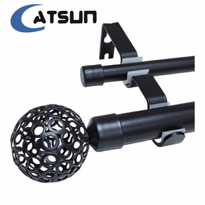 アマゾンのサプライヤーの白黒の金色の丸いボールの帽子のふたの双棒のカーテンの竿のねじは双軌道の伸縮のローマの竿をつなぎ合わせます。