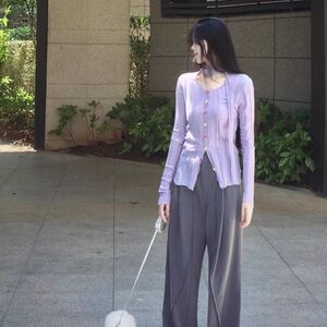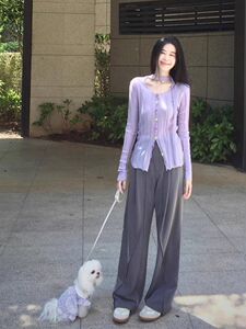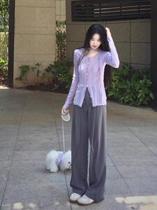 紫色镂空薄款针织罩衫女2025秋季新款修身显瘦设计感正肩打底上衣