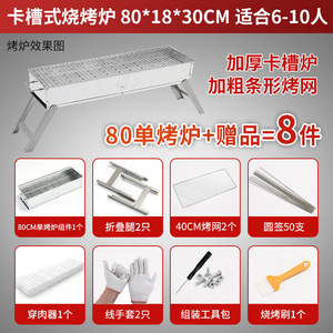 加厚80组装烧烤炉+白手套+穿串器+油刷+35圆签50个+40烤网2个