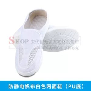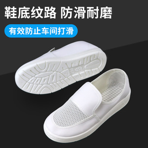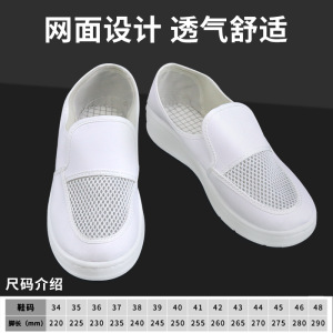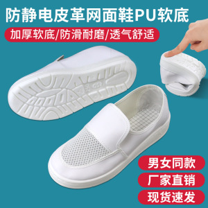 帯電防止ホワイトレザーシングルメッシュ通気性PUソフトソールダストフリーシューズクリーンダストシューズ作業靴