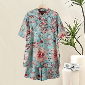 国風セット夏の薄いスタイルのファッション盤は国風ファッションの大きいサイズの上着のショートパンツを掛けて痩せています。