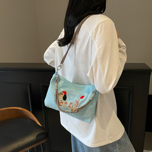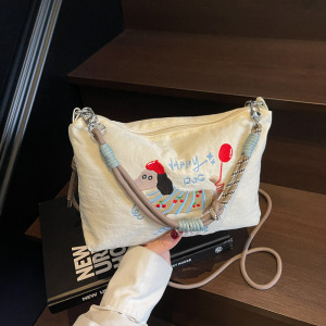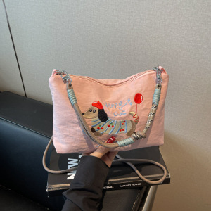 日系ソーセージ犬刺繍ナイロン布バッグの流行に合わせて、軽いショルダーバッグ2025の新型ショルダーバッグを持っています。