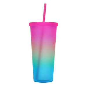 工場直接供給グラデーションカラー二層プラスチックストローカップ大容量パーソナライズされた通勤ドリンクカップつや消しテクスチャードウォーターカップ