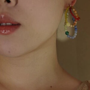 彩虹可爱原创设计珠多圈小众少女春夏色耳环耳环款单只耳环款一对