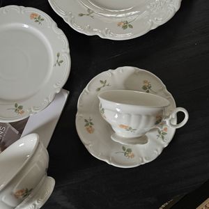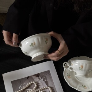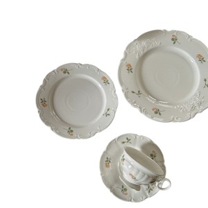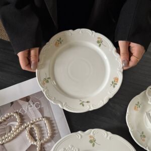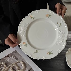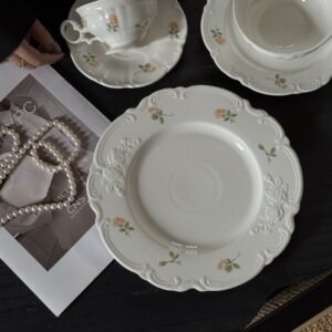 フランスのレトロなレースの花のレリーフの陶磁器の皿の中古の午後のお茶のデザートのコーヒーのカップの皿の洋食の家庭用