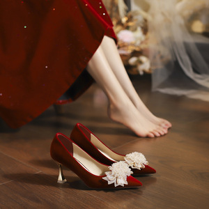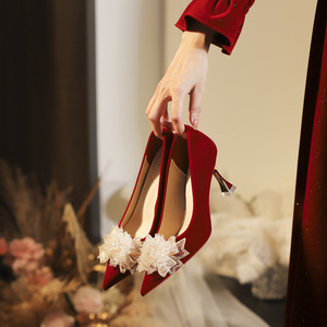 X788-58 ハイヒールレッドウェディングシューズ 2025 新しい Xiuhe 花嫁の靴大きいサイズの女性の靴多用途 32-43