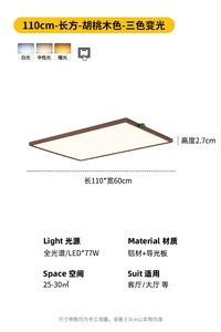 長方形 110×60cm ウォールナット 3色ライト 77W