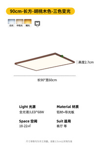 長方形 90×60cm ウォールナット 3色ライト 68W