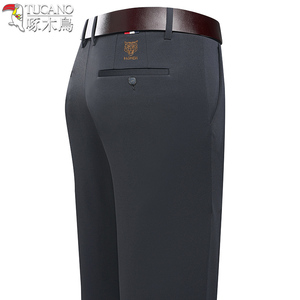 ウッドペッカービジネスカジュアルパンツ夏薄いアイスシルクメンズパンツ中年お父さんパンツルーズストレートパンツ