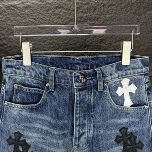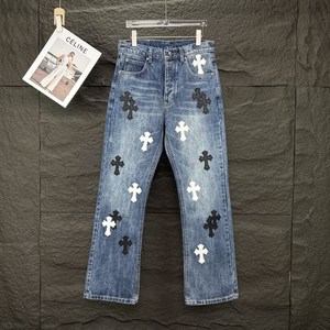 CH Crowe 2025 四季新作白黒クロスレザー刺繍カップルスタイルルーズウォッシュドマイクロフレアジーンズ