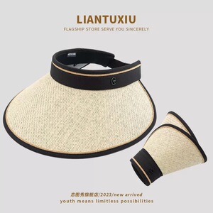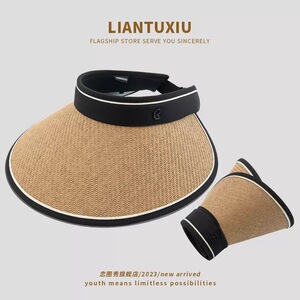 中空帽子女性の夏の日焼け止め麦わら帽子抗 UV 大きなつばサイクリングロールアップ収納サンハット UV サンハット