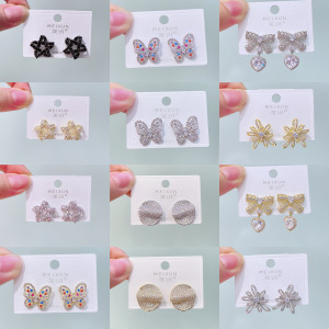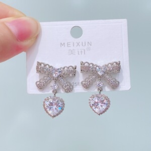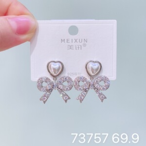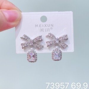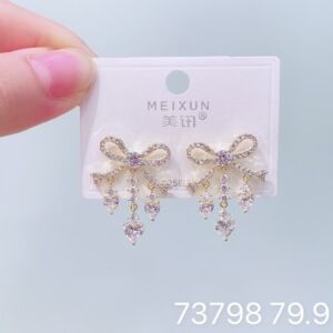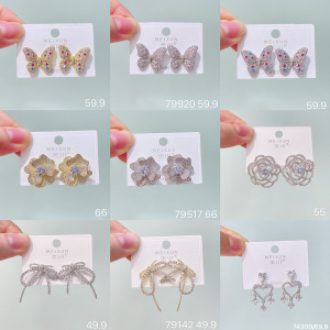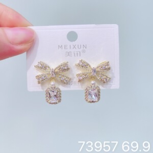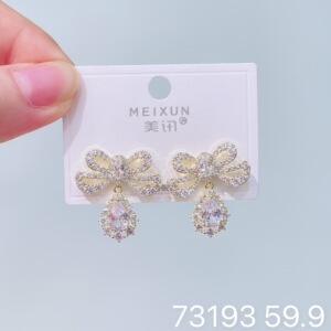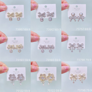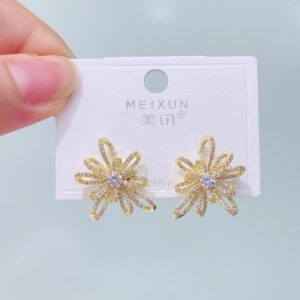 Meixun ジュエリー韓国版の新しいマイクロ象嵌ジルコンイヤリング、ファッショナブル、軽い高級感、ハイエンドの女性用多用途イヤリング