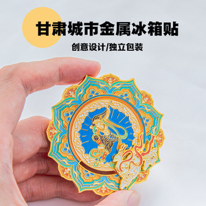 甘粛の都市の冷蔵庫は国潮のランドマークの建築の観光文を貼って金属の磁気を作って冷蔵庫を吸収して現物を貼って贈り物を供給します。