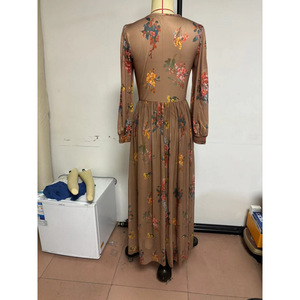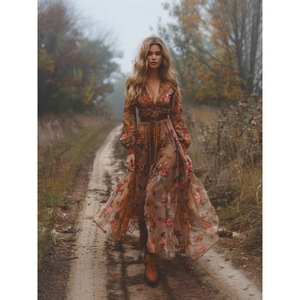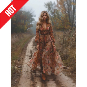 2025 ヨーロッパとアメリカの女性の独立したステーション Amazon 長袖デジタルプリント襟ロングスカートドレス
