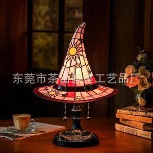 ステンドグラス魔女帽子ランプ魔女帽子ランプ LED ライトハロウィン家の装飾